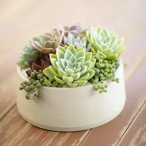b) Macetas con plantas suculentas